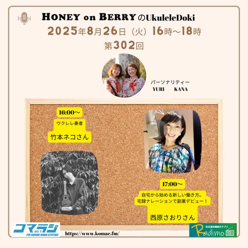 youtu.be SWEET TIME PARADISE HONEY on BERRYの『Ukulele Doki』 【放送時間】16:00~18:00 【パーソナリティ】HONEY on BERRY(YURI、KANA) HONEY on BERRY公式サイトhttps://honeyonberry.club/ 【コマラジ聴取方法】 ■狛江市にお住いの皆さま ラジオは8…